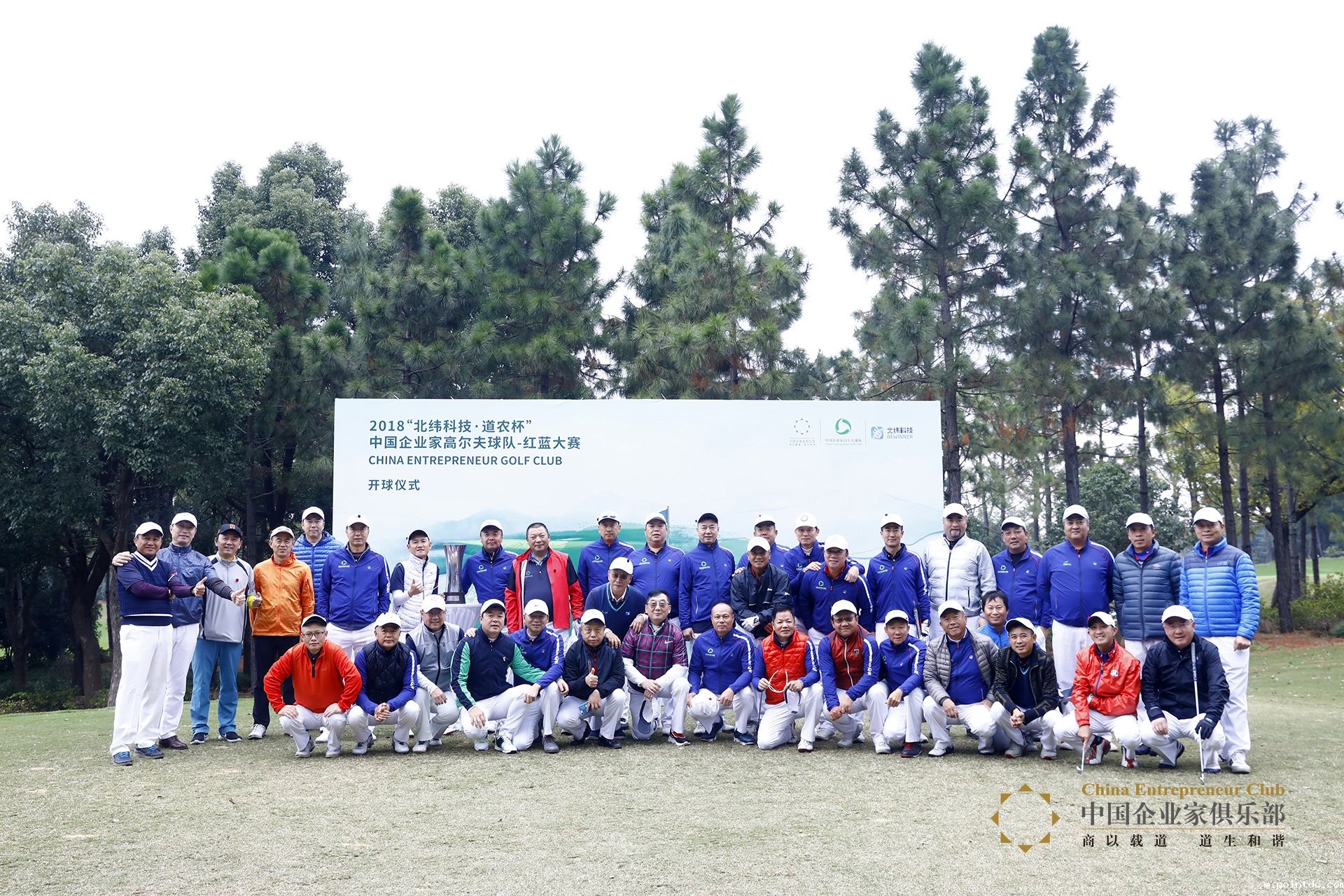 ▲2018“北纬科技·道农杯”中国企业家高尔夫球队红蓝大赛赛前合影
